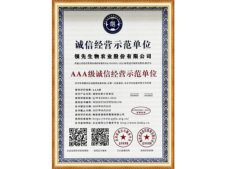 AAA级诚信经营示范单位